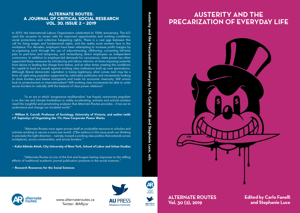 Fanelli, C. and J. Shields, eds. Precarious Work and the Struggle for Living Wages, Alternate Routes 2016. Edmonton: Athabasca University Press.