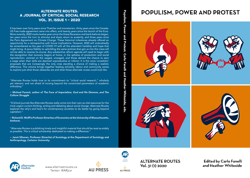 ◦ Fanelli, C. and H. Whiteside, eds. (2020). Populism, Power and Protest, Alternate Routes: A Journal of Critical Social Research. Edmonton: Athabasca University Press.