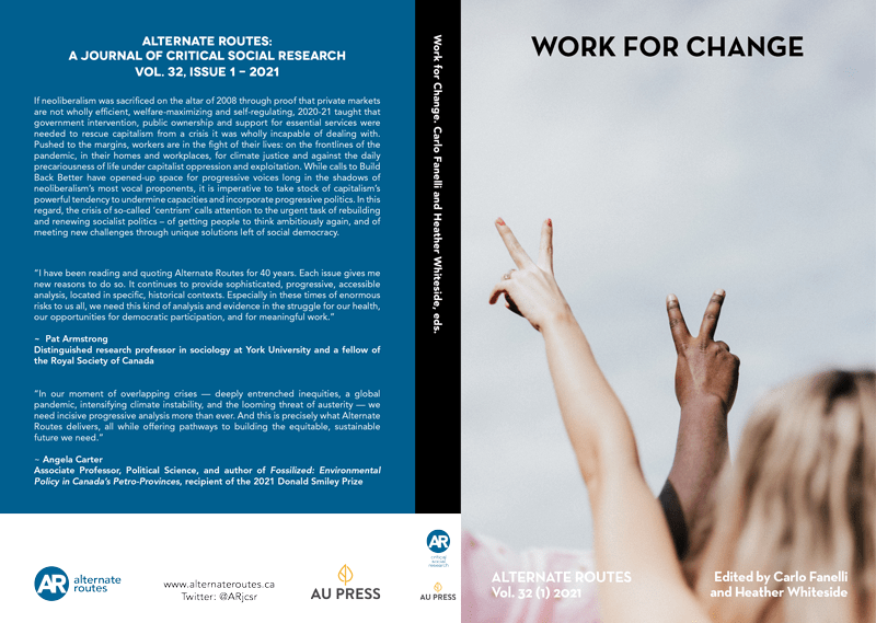 ◦ Fanelli, C. and H. Whiteside, eds. (2021). Work For Change, Alternate Routes: A Journal of Critical Social Research. Edmonton: Athabasca University Press.